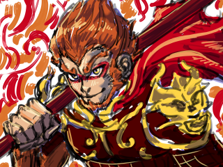 Sketch a color de Sun Wukong. Hecho en Paint Tool SAI. Dibujo de regalo, es de los primeros dibujos que hice con tableta gráfica.