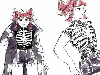 Sheet de personaje, Iwa versión Halloween. Hecho en Paint Tool SAI. Este personaje es un fantasma, y halloween era la excusa perfecta para hacer un nuevo diseño inspirado en la muerte. El dibujo tiene dos partes más que se pueden ver acá.